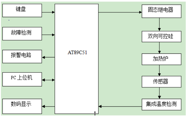 ◎ 本系統(tǒng)系首要完結(jié)數(shù)據(jù)收集、溫度顯現(xiàn)、爐溫操控、毛病檢查以及報(bào)警功用,智能操控器由單片機(jī)完結(jié),選用規(guī)矩自尋優(yōu)的操控算法進(jìn)行進(jìn)程操控,加熱爐選用雙向可控硅操控,由單片機(jī)輸出通斷率操控信號,發(fā)生可控硅的過零觸發(fā)脈沖。